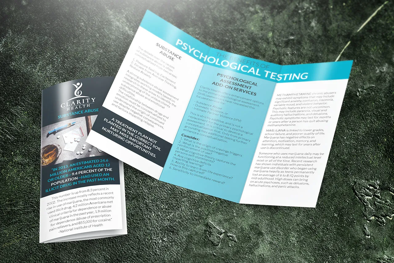 I created a new brand for Clarity Health, LLC that upgraded their look. The client asked for something to do with a brain that demonstrated both the emotional and logical sides. Keeping the brain outlined in a neutral white, I used paint splatters to represent the emotional side and little symbols of double helixes, cogs, beakers, and other scientific elements to represent the logical side.